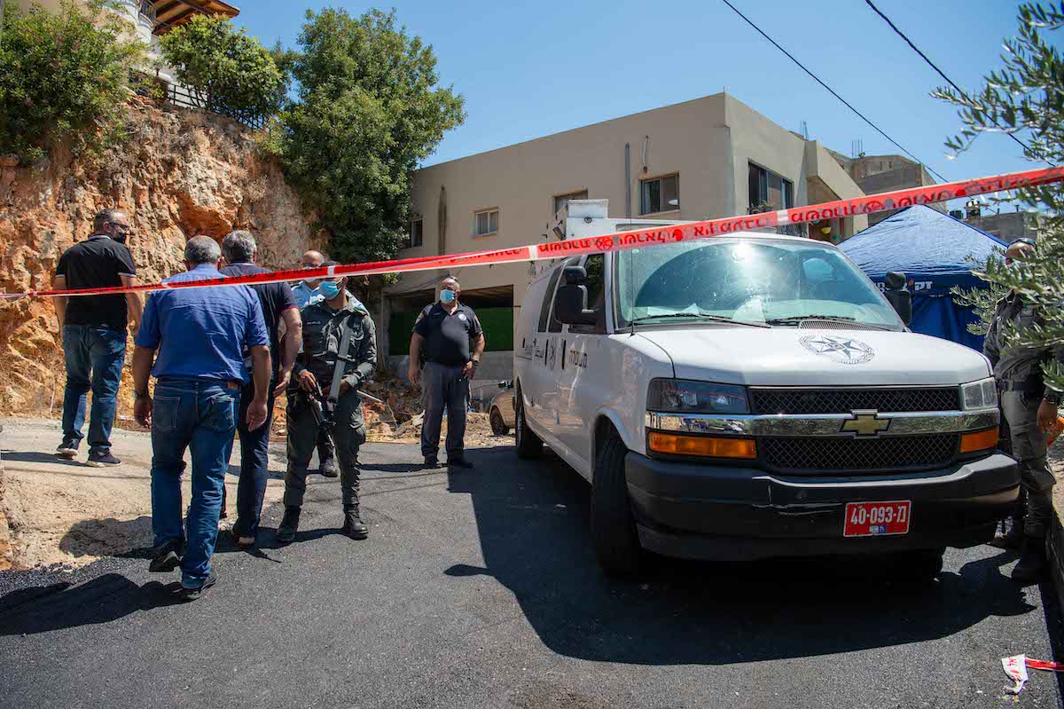 Politiet ved åstedet hvor en israelsk-arabisk mann ble funnet drept i byen Rameh 15. august 2021. (Foto: Flash90)