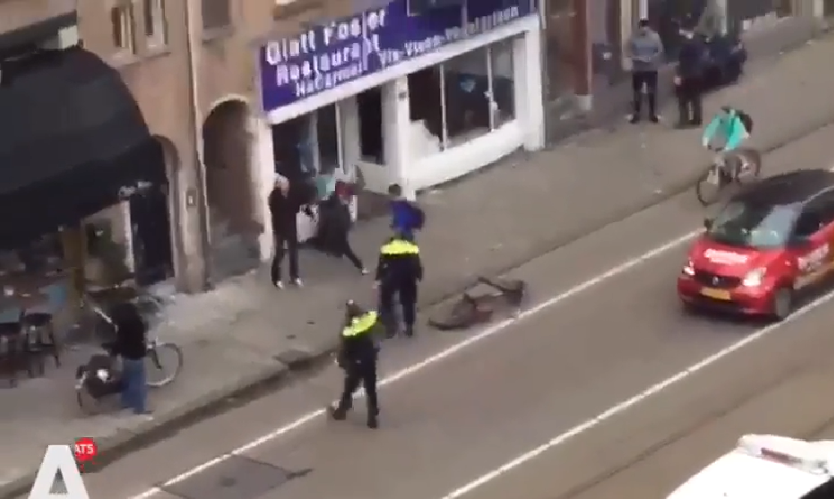 Skjermdump fra videoopptak av angrepet mot en jødisk restaurant i Amsterdam 7. desember 2017.