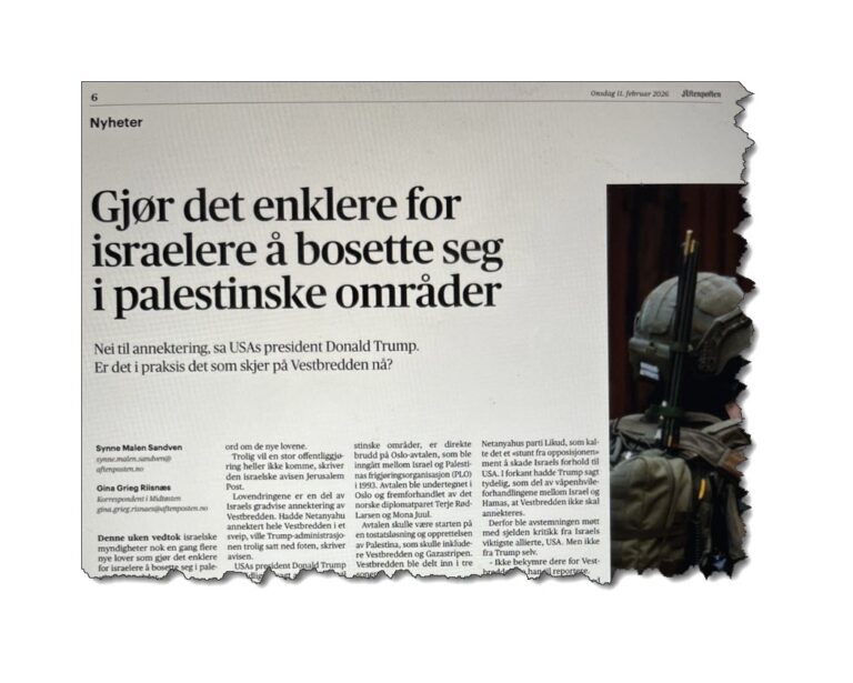 Tirsdag 25. november 2025 sendte MIFF-medlem Tordur Gylfason følgende e-post til NRK: Hei, Vilde Skorpen Wikan og Sigurd Falkenberg Mikkelsen Jeg henviser til artikkelen Vilde har skrevet og Sigurd har godkjent: Israel kontrollerer halve Gaza – vil de gi fra seg territoriet? Jeg mener at artikkelen