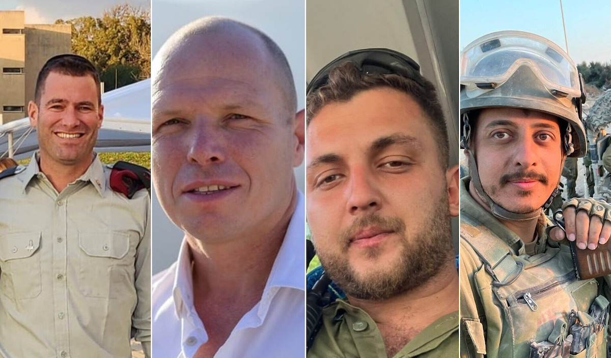 L-R: Maj. (res.) Moshe Yedidyah Leiter, Sgt. Maj. (res.) Yossi Hershkovitz, Master Sgt. (res.) Sergey Shmerkin, Master Sgt. (res.) Netanel (Nati) Harush, who were killed in the Gaza Strip on November 10, 2023. (Courtesy)