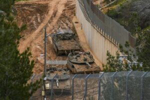 Israelske stridsvogner ved grensen mot Libanon den 2. mars 2026. (Foto: Flash90)