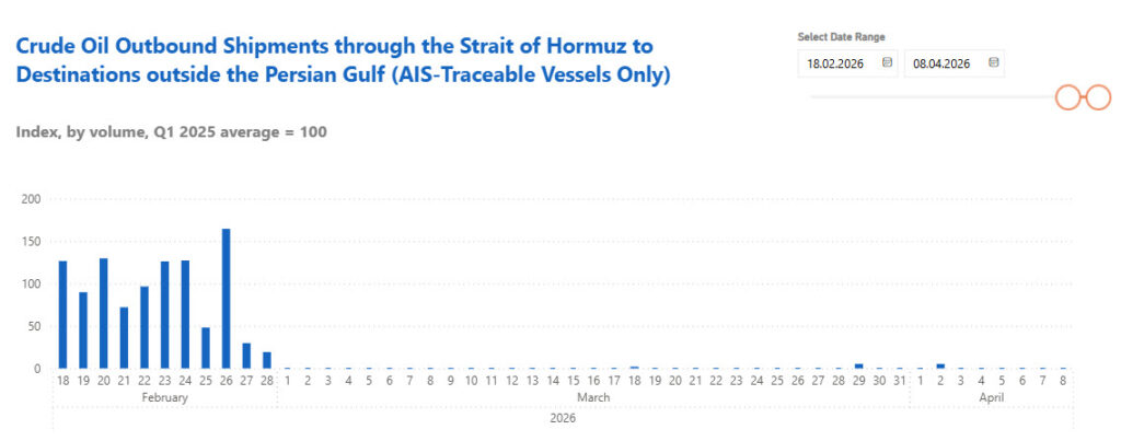 De første 24 timene etter våpenhvilen har bare én oljetanker og fire lasteskip (dry bulk) seilt gjennom Hormuz-stredet, melder nyhetsbyrået Reuters.