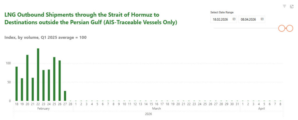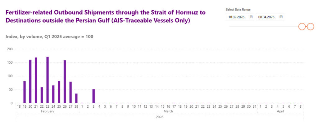 Grafene fra Word Trade Organization viser hvordan trafikken i Hormuz stanset nesten helt opp fra 28. februar.