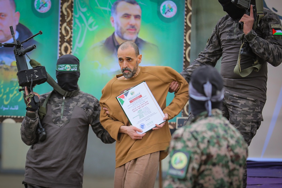 En utmagret Eli Sharabi ble løslatt 8. februar. NRK meldte at han ble gjenforent med sine kjære, selv om hele familien ble drept av Hamas 7. oktober 2023. (Foto: Flash90)