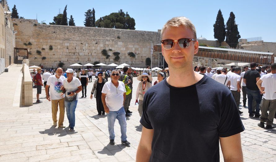 Lars Nordgaard foran Vestmuren i Jerusalem. (Foto: Kjetil Ravn Hansen)