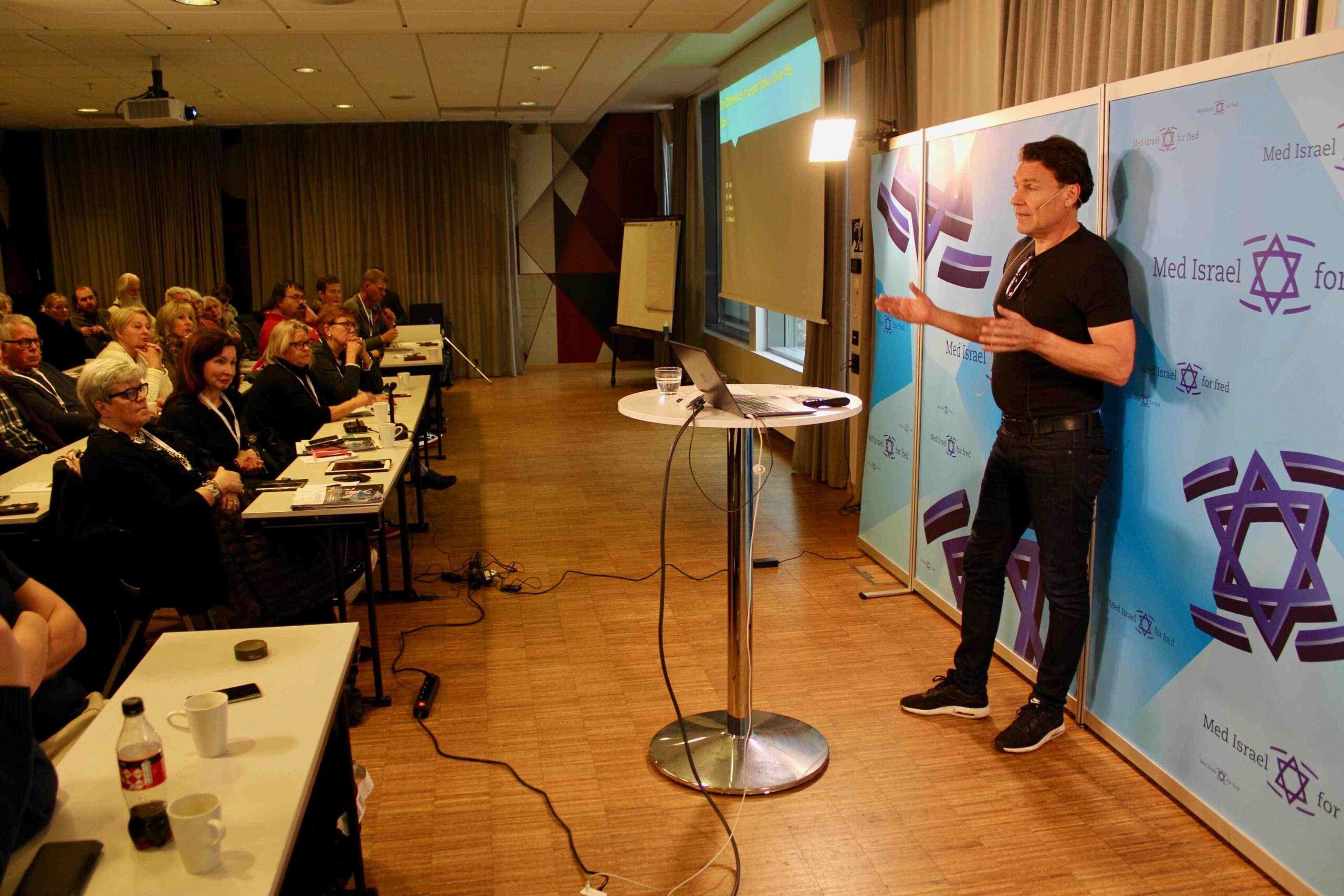 Leder av MIFF Hallingdal, Jens Jorde, holdt foredrag om israelsk teknologiutvikling. (Foto: Bjarte Bjellås)