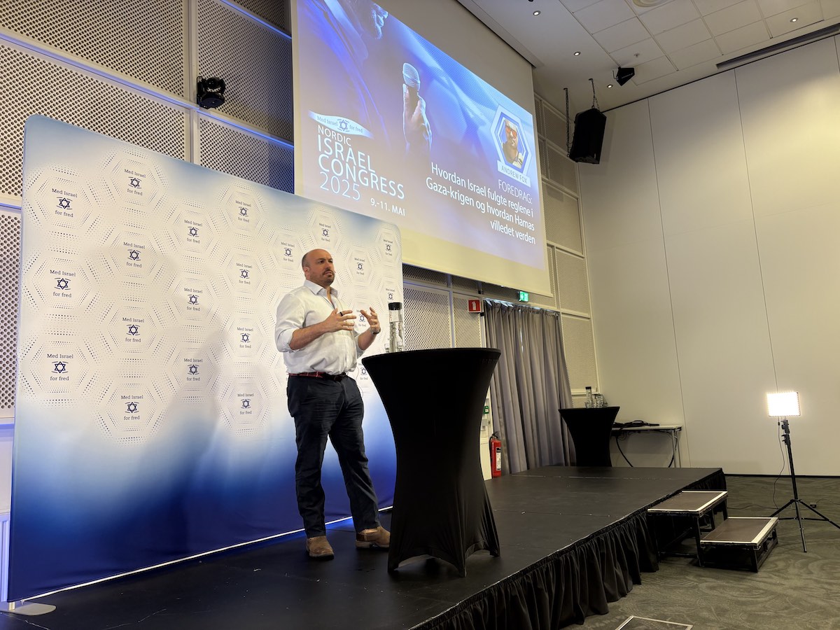 Den britiske militæreksperten Andrew Fox på Nordic Israel Congress 10. mai 2025. (Foto: Bjarte Bjellås)