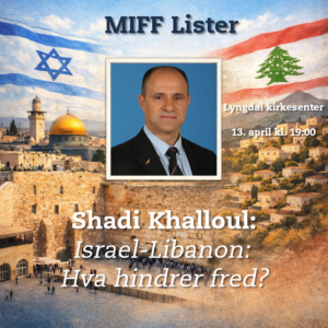 MIFF Lister inviterer til åpent møte med foredrag av Shadi Khalloul, en fremstående talsmann for den arameiske minoriteten i Israel. Mandag 13. april 2026 kl. 19.00Lyngdal kirkesenter, Fiboveien 32 Tittel på foredraget:Israel-Libanon: Hva hindrer fred? Khalloul er grunnlegger og leder av Israeli Christian Aramaic Association (ICAA) og major i de israelske reservestyrkene. Han har utdanning […]