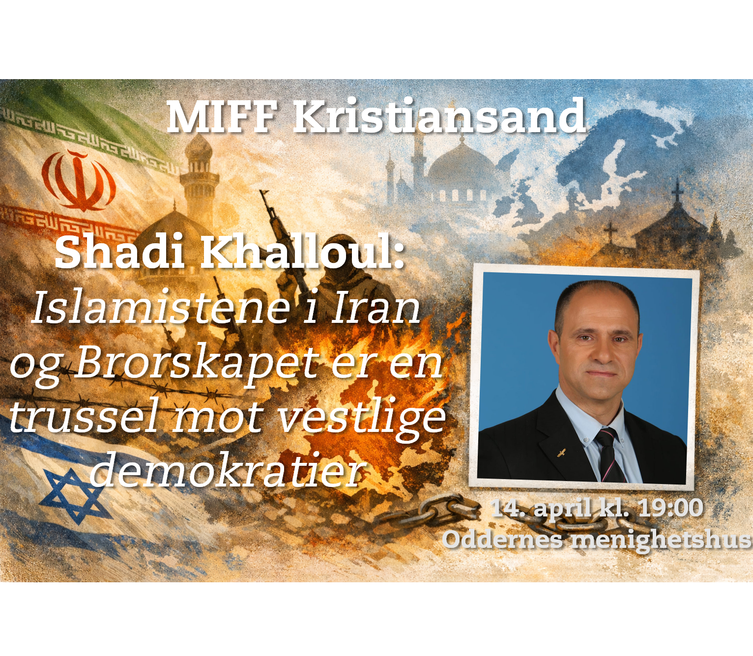 MIFF Kristiansand inviterer til et åpent møte med foredrag av Shadi Khalloul, en fremstående talsmann for den arameiske minoriteten i Israel.