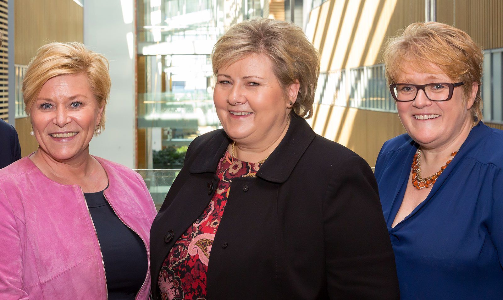 Siv Jensen (FrP), Erna Solberg (Høyre) og Trine Skei Grande (Venstre) danner ny regjering. (Foto: Hans Kristian Thorbjørnsen, Høyre, flickr)