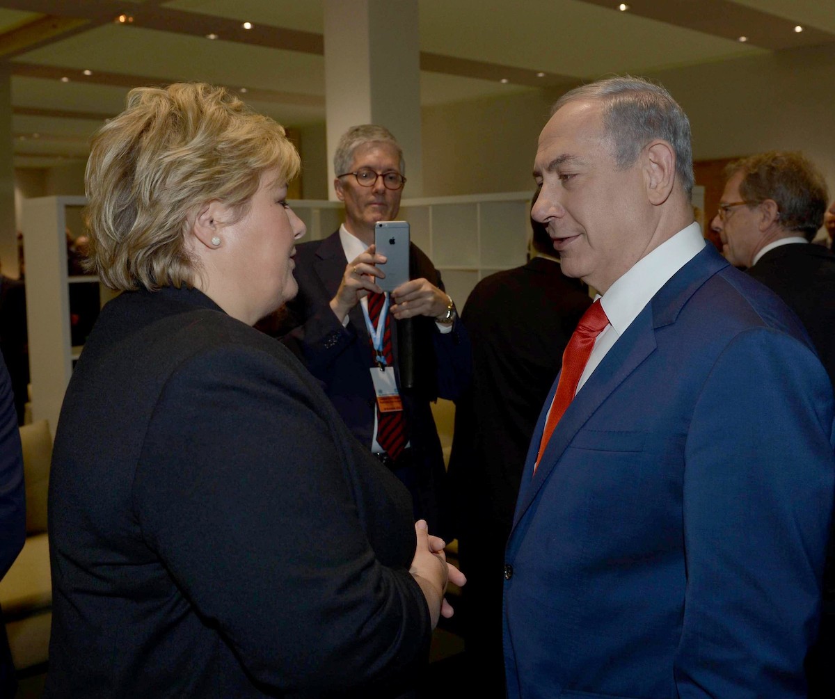 Benjamin Netanyahu inviterte Erna Solberg til et vaksinesamarbeid, som hun takket nei til. Her fra et møte i paris i 2015. (Foto: GPO)