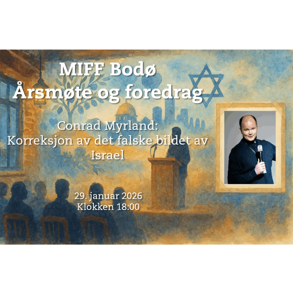 📢 Invitasjon til åpent møte i MIFF Bodø, med foredrag av Conrad Myrland. Etter foredraget blir det avholdt årsmøte for lokalforeningen. 📅 Dato: Torsdag 29. januar 🕖 Tid: Kl. 18.00 📍 Sted: Filadelfia, Fredensborgveien 129 ☕ Servering: Kaffe og enkel servering 🔹 Foredragsholder: Conrad Myrland (daglig leder i MIFF) 🔹 Tema: Korreksjon på det falske bildet av Israel ℹ️ Om foredraget Meningsmålinger viser at en stor andel av det norske folk har oppfatninger knyttet til Israel som bygger på faktafeil eller konspirasjoner. Dette skyldes flere tiår med massiv anti-israelsk propaganda fra ulike medier, akademikere, politikere og organisasjoner. I dette foredraget fokuserer Myrland på demoniseringen av Israel som har kommet i kjølvannet av 7. oktober-massakren i 2023. Det blir også anledning til å stille spørsmål om den aktuelle situasjonen og MIFFs arbeid. ℹ️ Om foredragsholderen I september 2025 ble Conrad Myrland kåret av Jerusalem Post på «topp 25 unge sionister med mest innflytelse i verden».Han har skrevet tusenvis av artikler og flere bøker for å korrigere det feilaktige bildet av Israel i norsk akademia, media og samfunnsliv. 📄 Årsmøte for MIFF Bodø og omegn Avholdes etter foredraget. Dagsorden: 1️⃣ Innkalling2️⃣ Godkjenning av saksliste3️⃣ Valg av møteleder og referent4️⃣ Valg av to medlemmer til å undertegne protokollen sammen med møteleder5️⃣ Årsberetning for 20256️⃣ Regnskap og revisors beretning for 20257️⃣ Avgjørelse av ansvarsfrihet for styret8️⃣ Behandling av innkomne saker9️⃣ Valg av: a) Styre b) Revisor c) Delegater og varadelegater til MIFFs landsmøte 💬 For mer informasjon, kontakt: 📞 Kassandra Petsa, leder, 98460927 🎉 Arrangementet er åpent for alle – velkommen!