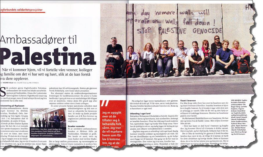 Også flere andre palestinske anklager blir ukritisk videreformidlet i Fagbladets artikkel. De norske utsendingene møter en palestinsk nomadefamilie som hevder å bli “fortrengt”. Anklagen blir ukritisk gjengitt, selv om det også rapporteres at de bor på samme sted de bodde da patriarken ble født i 1947.